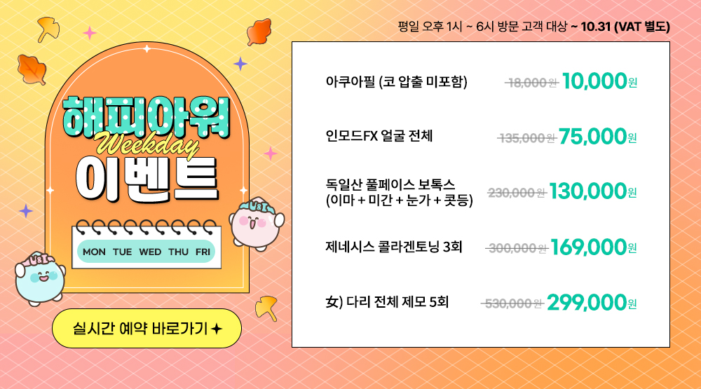 1주차 아쿠아필 + 얼굴전체 솜털제모 + 클리어코코 + 크라이오 진정관리 + 모델링팩